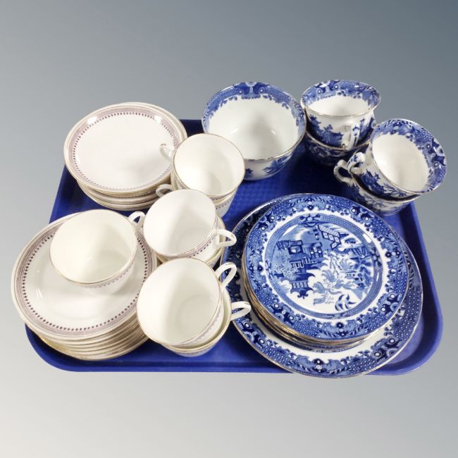 Seven antique china trios together with 12 further pieces of antique willow pattern china.