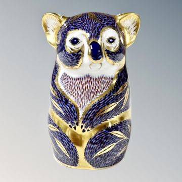 A Royal Crown Derby Imari koala paperweight with silver stopper.