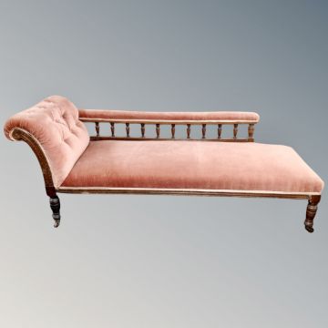 A Victorian chaise longue in buttoned fabric, length 175cm