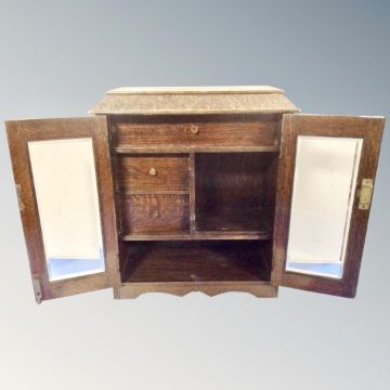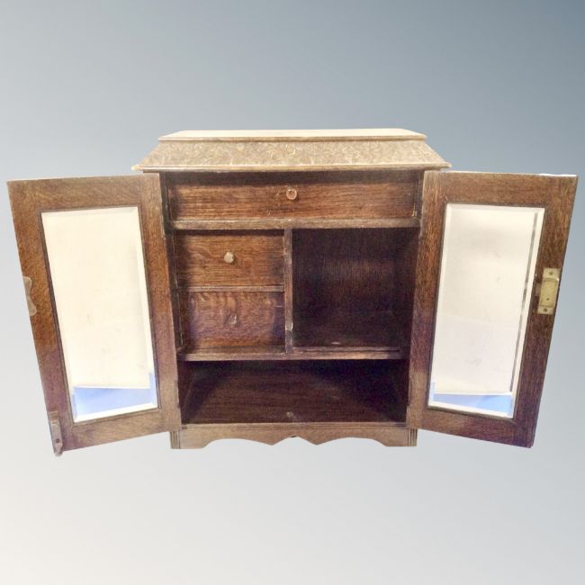 A later 19th century double door oak smoker's cabinet.