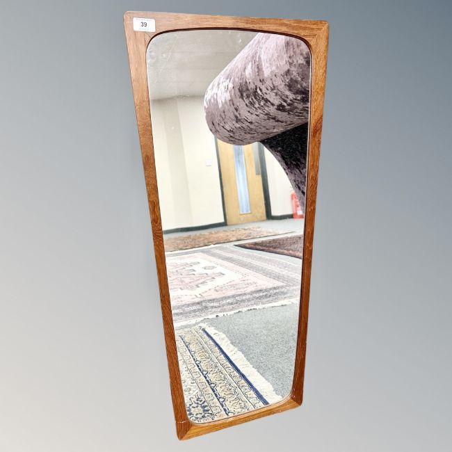 A mid-century teak framed mirror, 41cm by 91cm.