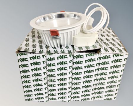 Four NVC lighting Winchester 2300LM LED down lights, boxed.