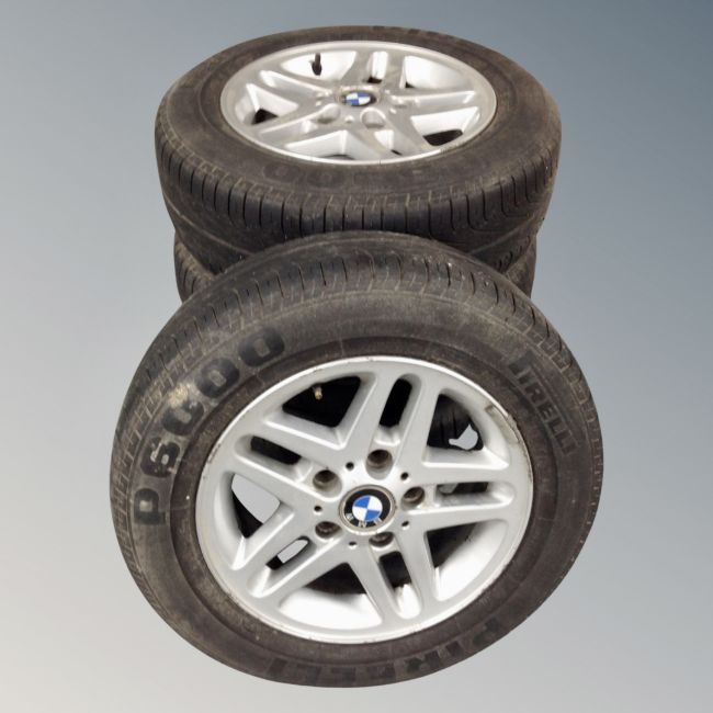 A set of four BMW alloy wheels with Pirelli P6000 tyres.