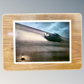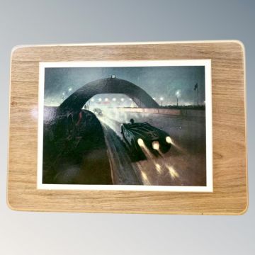 Jaguar Cars : A presentation set of six placemats all celebrating Jaguar race wins and records, illustrated with colour images depicting the various races from the 1950's, each with green baize backing and race details verso, each 19 cm x 27 cm, contained within a wooden box bearing the Jaguar emblem.