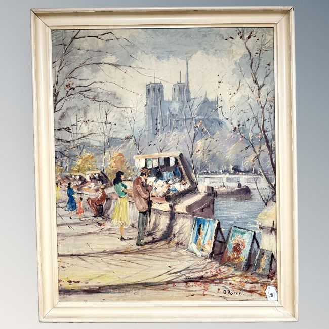 O Ronni : Market by a canal, oil on canvas, 64cm by 79cm.