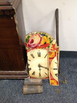 A Scandinavian painted longcase clock with hand painted dial (AF), pendulum and weights.