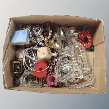 A tray of collectables including cut crystal napkin rings, brooches, lapel pins.