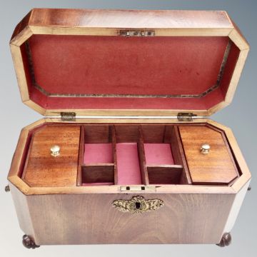 A 19th century mahogany fitted jewellery box with brass drop handles.
