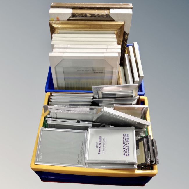 Two plastic crates of a quantity of photograph and pictures frames (new and sealed)