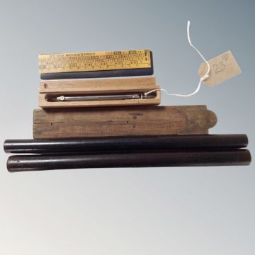 A 1962 Templer professional compass with military markings, in original case, together with 2 ebony rolling rules etc.