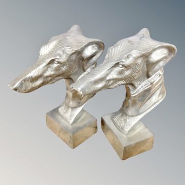 A pair of 9.5" brushed and polished aluminium greyhound head bookends