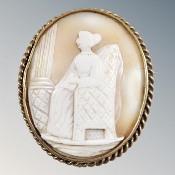 A vintage gilt cameo brooch
