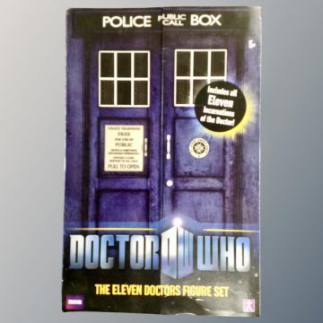 A Dr Who eleven doctors action figures set in Tardis box