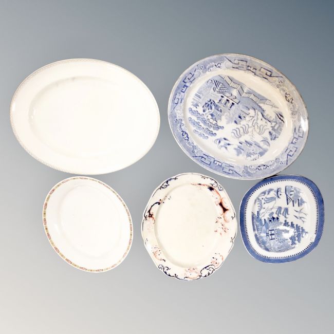 Five antique meat plates.
