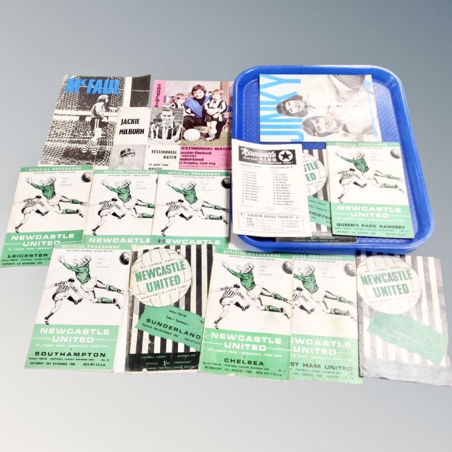 A tray of 1960's Newcastle United home programmes, four testimonial programmes, Jackie Milburn, Willie Mcfaul, David Craig and Jimmy Smith