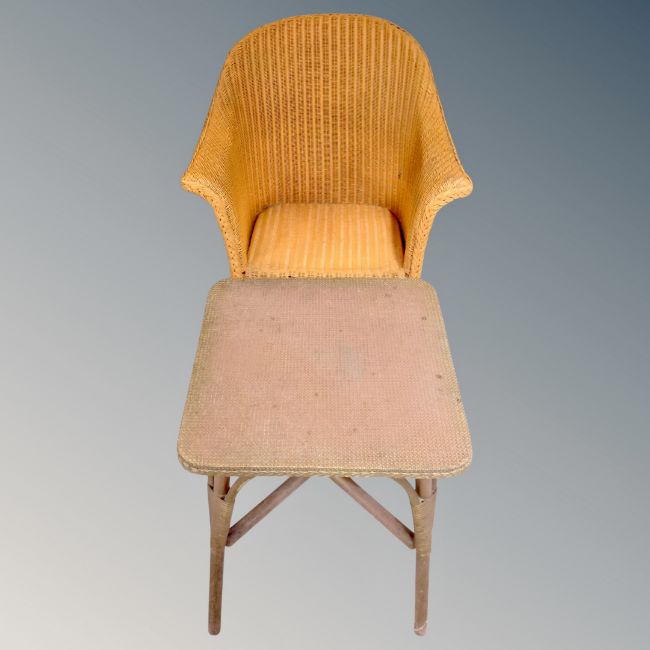 A 20th century painted Lloyd loom armchair together with similar occasional table