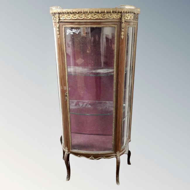 A Louis XV style vitrine with gilt metal mounts and marble top (glass cracked)