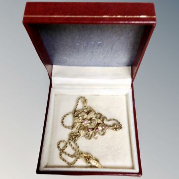 A boxed Attwood & Sawyer necklace in floral with pink stones
