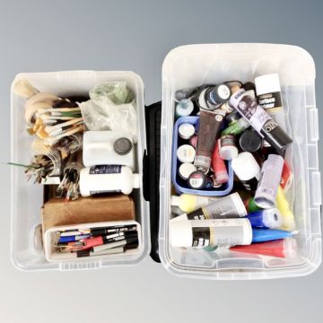 Two boxes of art supplies
