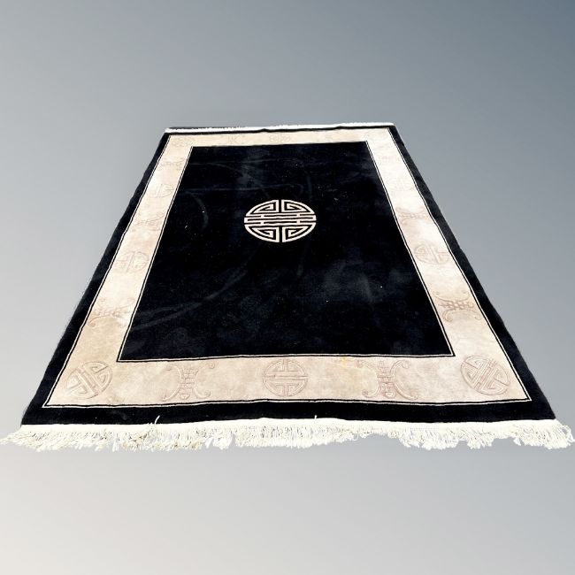 A Chinese carpet on black ground, 318 cm x 224 cm