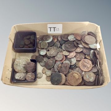 A box of ancient coins