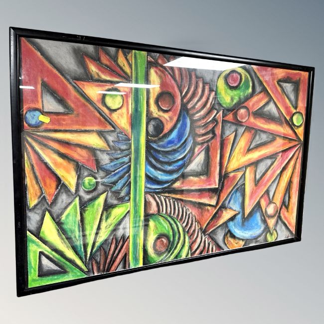 Brian Foggett (Contemporary) : Polychrome abstract shapes, oil on canvas, 88 cm x 60 cm, framed.