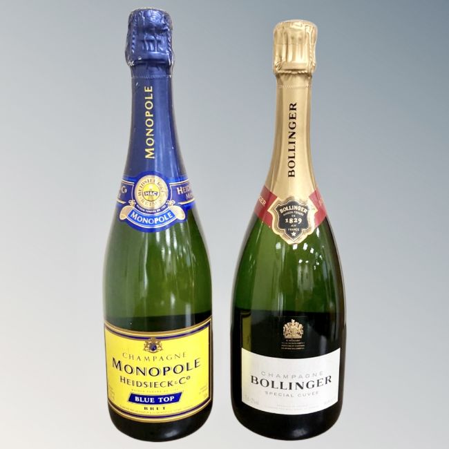 Bollinger Special Cuvee champagne 75cl together wih Monopole Heidsieck blue top Brut 750ml. (2)