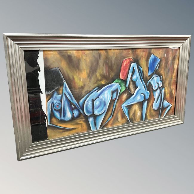 Brian Foggett (Contemporary) : Four female nudes, oil on canvas, 99 cm x 48 cm, framed.