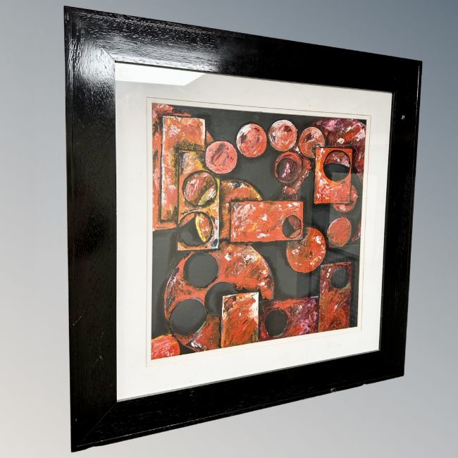 Brian Foggett (Contemporary) : Abstract red shapes, oil on canvas, 50 cm x 50 cm, framed.