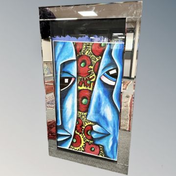 Brian Foggett (Contemporary) : Blue face study, oil on paper in mirrored frame, 116 cm x 66 cm including frame.