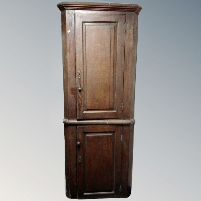 A George III oak single door corner cabinet