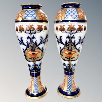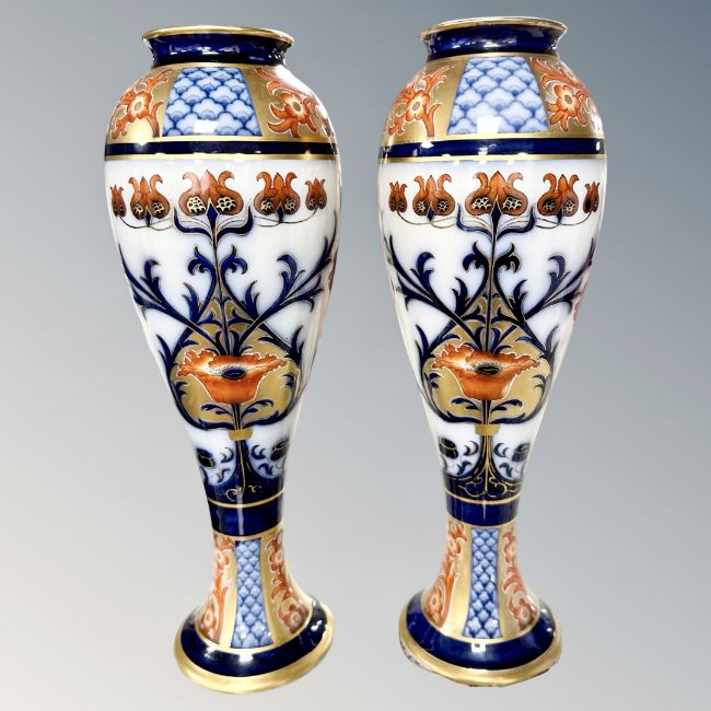 A pair of Macintyre Burslem Imari porcelain vases, height 29cm.