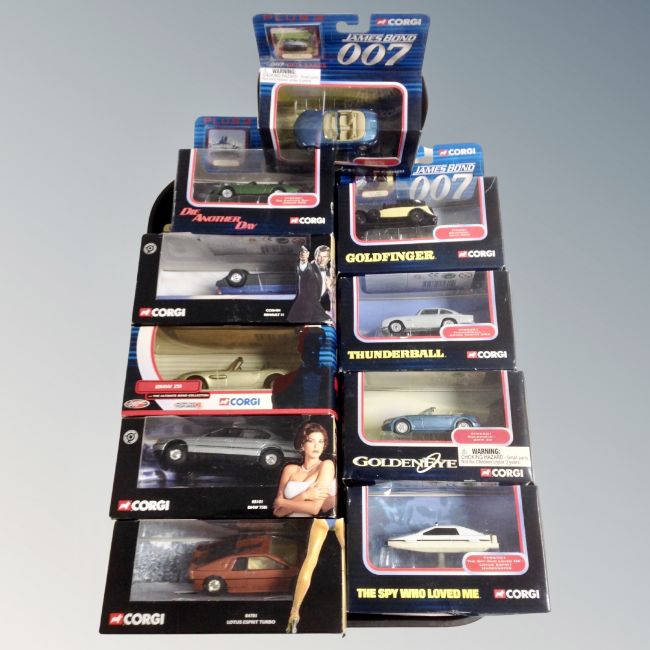 A tray of ten Corgi James Bone die cast vehicles, boxed