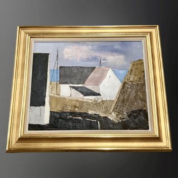 Leon Moller : Coastal cottages, oil on canvas, 57 cm x 47 cm, framed.