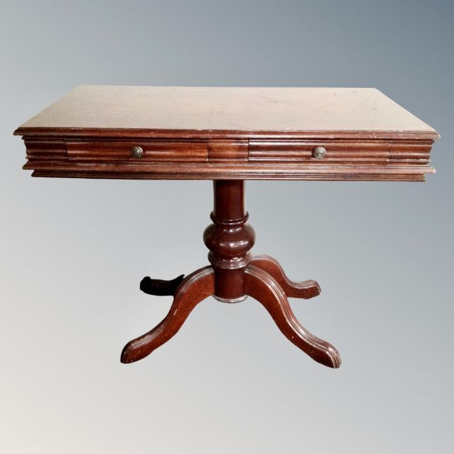 A Victorian style pedestal hall table fitted with two drawers.