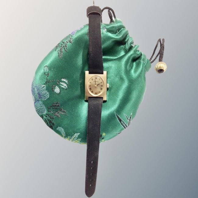 A lady's Longines gold-plated and stainless steel wristwatch on leather strap.