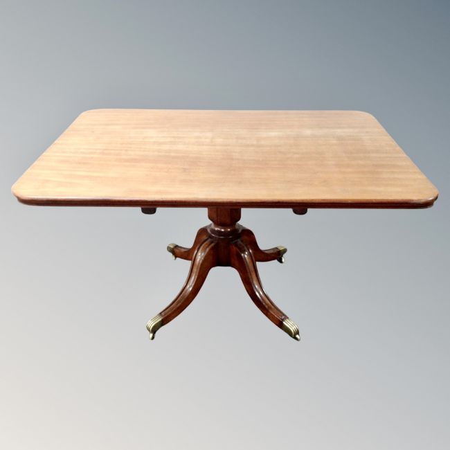 A 19th century mahogany pedestal breakfast table on brass capped feet.