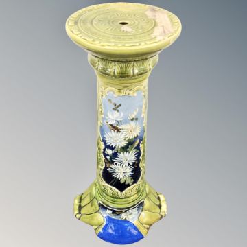 A 19th century hand painted pottery plant pedestal. (height 80cm)