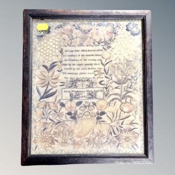 A colour print depicting a 19th century sampler.