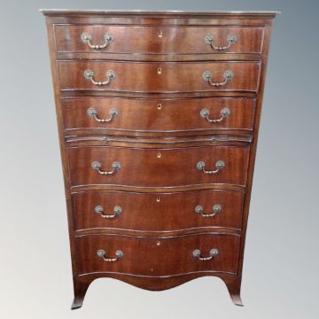 A Regency style six drawer serpentine fronted chest with slide.