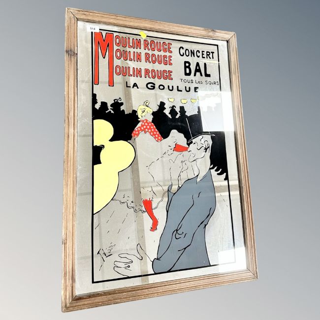 A Moulin Rouge advertising mirror, framed.