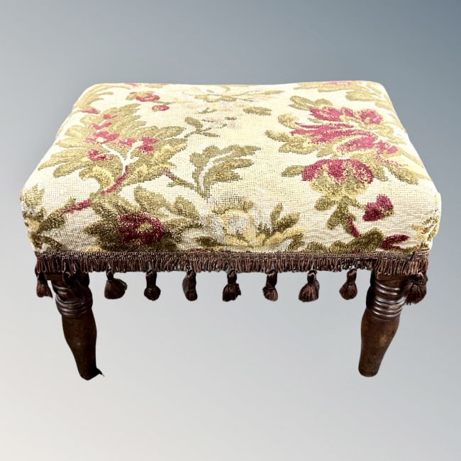 An Edwardian beech rocking chair and a small matching footstool (2)