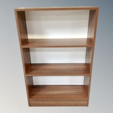 Three contemporary open bookshelves in oak finish