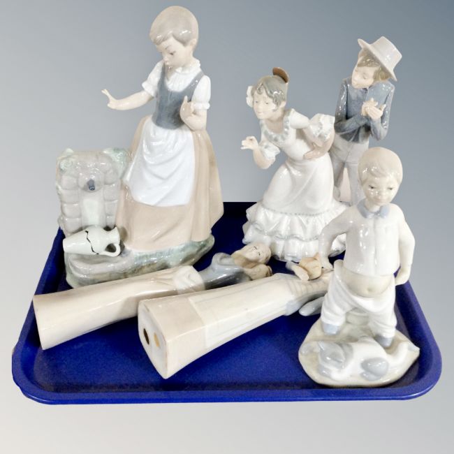 A Nao figure - Girl at water spout, further Nao figure dancers and three Spanish figures
