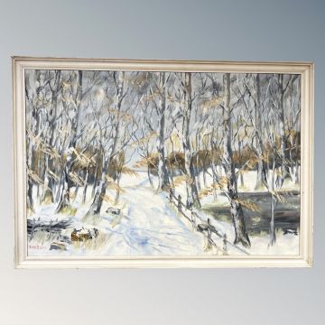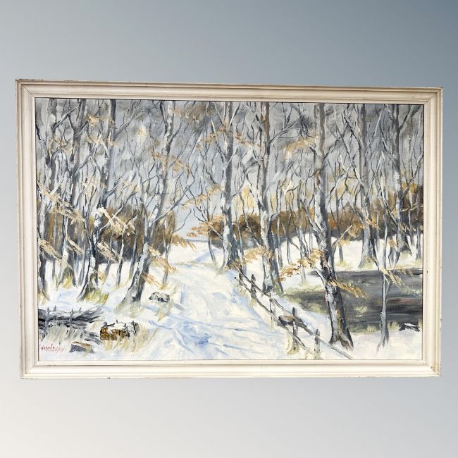 Harry Lagoni : Winter path, oil on canvas, 96 cm x 65 cm