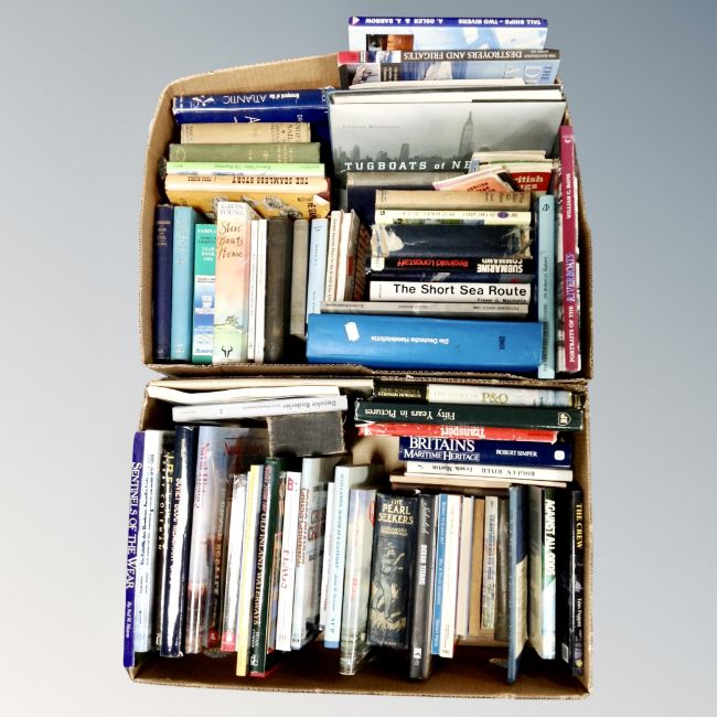 Two boxes of hard backed books of nautical interest