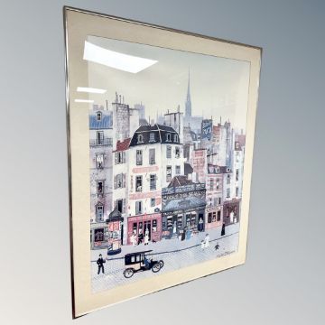 After Michel Delacroix : Paris street scene, colour print, 55 cm x 69 cm