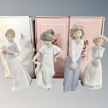 Four Nao figures - Too Cute, Gift from the Heart, Please Please and How Pretty, all boxed.