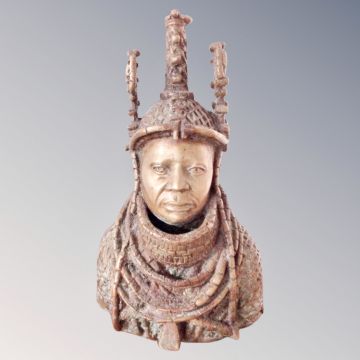 A Benin bronze bust of The Oba of Benin, height 23 cm.