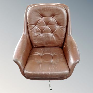 A century brown button leather swivel chair